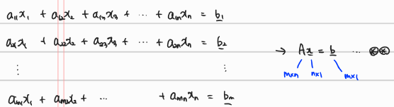 · 식㉯ (Ax = b)이 해를 갖는다면, 근 $x = x_p + x_h$ 가 된다.